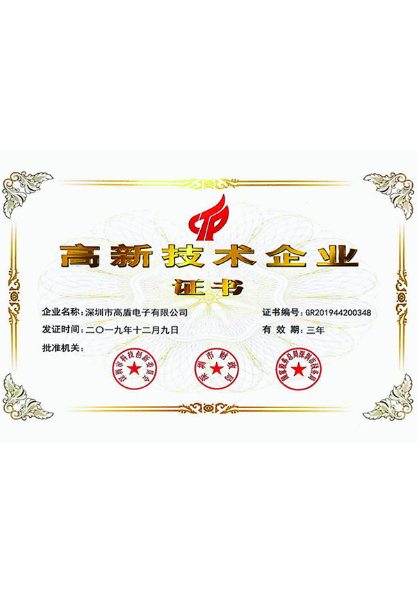 高新技術企業證書